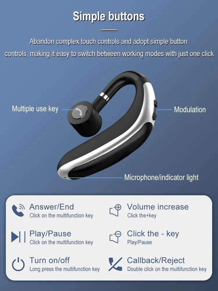 K20 Wireless Bluetooth 5.0 Universal Hook Earphones V9 Sports Business Single Ear Headset Handsfree headphone With Mic Cellphone
