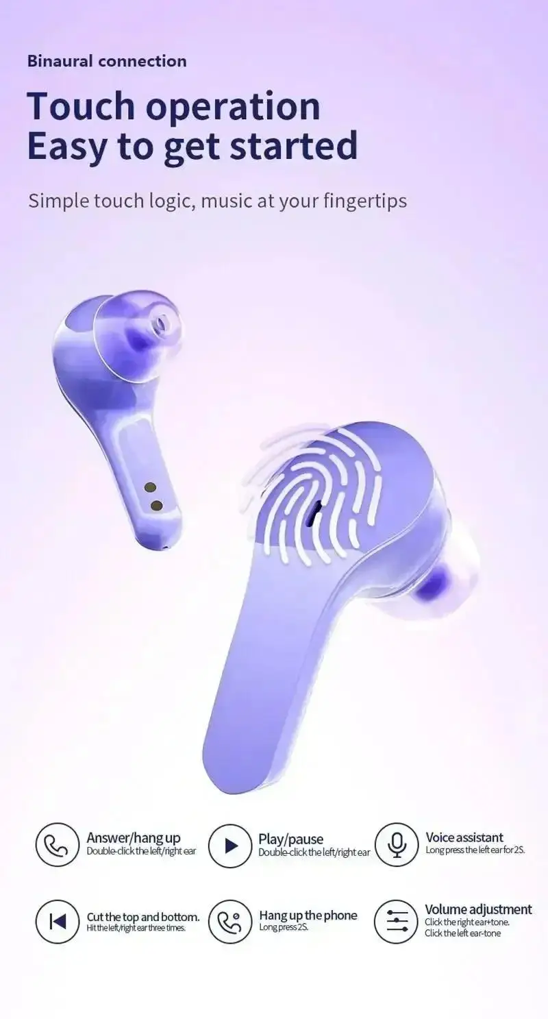 4. Comfortable to Wear: In ear Bluetooth-compatible earphones, silicone earcaps are comfortable to wear. Open the earphone case and take it out to automatically pair, providing an indescribable listening experience.