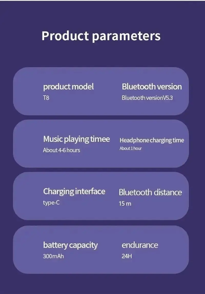 Working time: 5 hours, the charging box can charge the headphones 3 times.