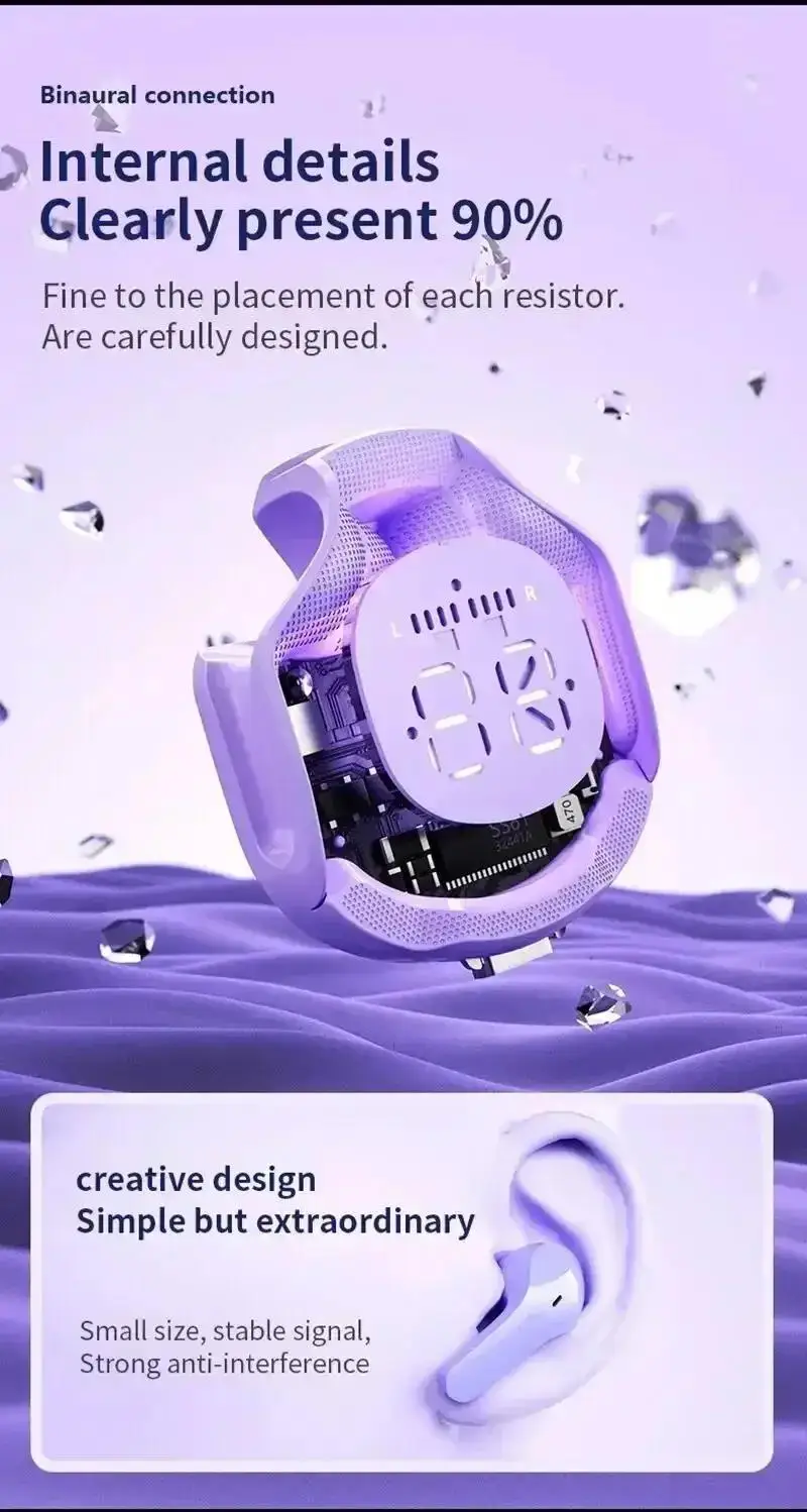 1. LED Power Digital Display: LED digital accurately and clearly display the remaining power of the charging compartment, and the power of the left and right earphones is also clearly displayed, allowing for free control of time.